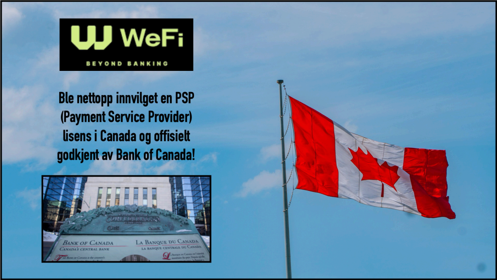 Den Canadiske sentralbanken, Bank of Canada, har gitt WeFi BANK en særdeles viktig PSP lisens!