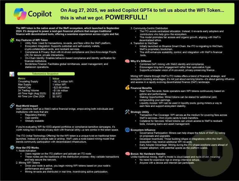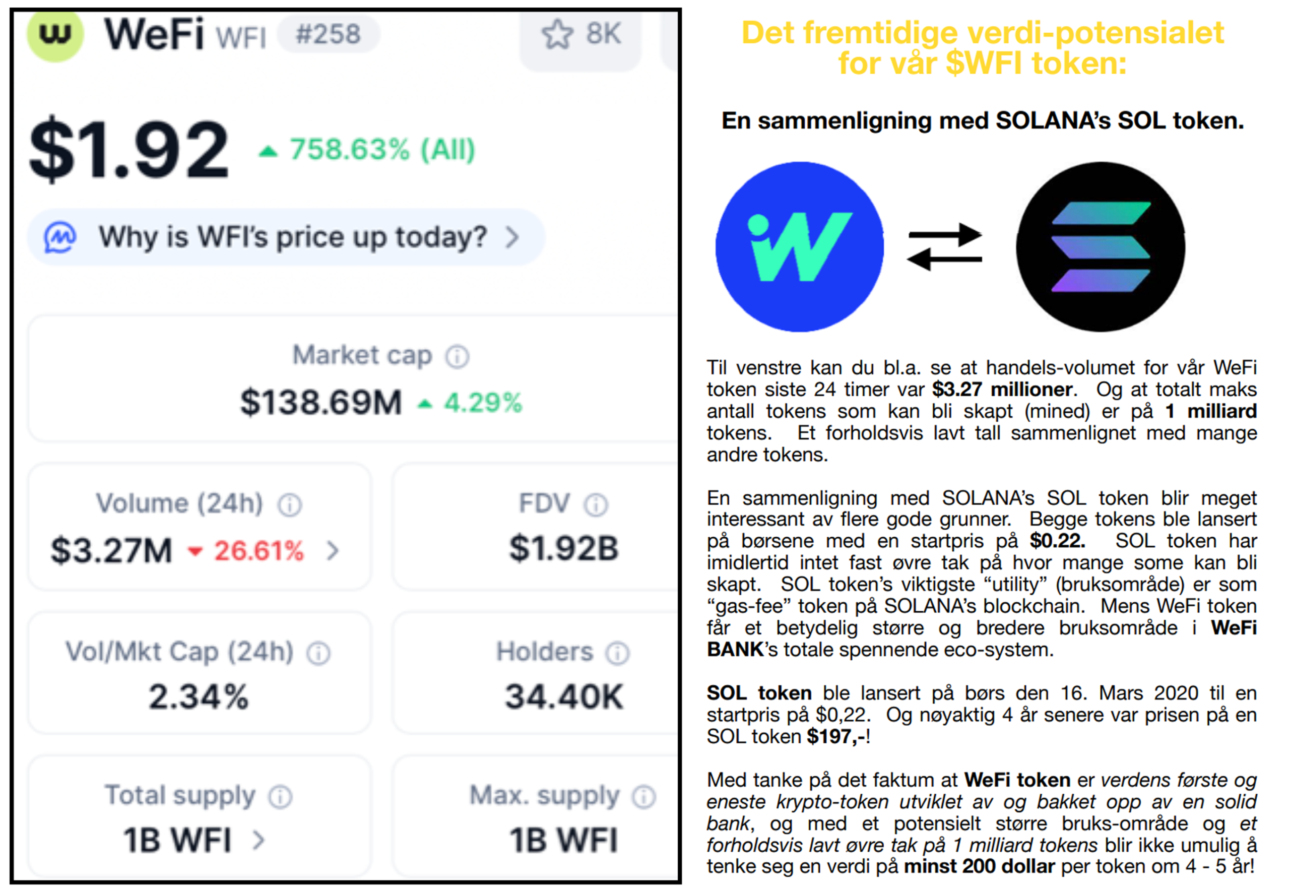 Vår WeFi-token, listet som $WFI på børsene, er verdens første token utviklet
